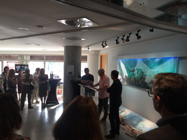 Asistiendo a la inauguración de la exposición GYOTAKU ZUZENEAN de José Abel y José María Ferarios, en el Museo Marítimo Ría de Bilbao. Lleno total en la presentación de las obras y charla sobre esta interesante técnica.Enhorabuena!